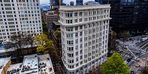 This is an aerial of the Flat Iron Building in Atlanta Ga. This image was taken by PROLYPHIQ. (Sean West)