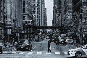 This is an image of Downtown Chicago parallel to Michigan Ave in black & white. This image was shot by PROLYPHIQ (Sean West)
